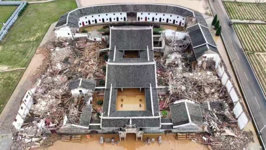 “客家第一祠”福建省龙岩市上杭县官田李氏大宗祠受特大暴雨袭击,发生大面积坍塌。