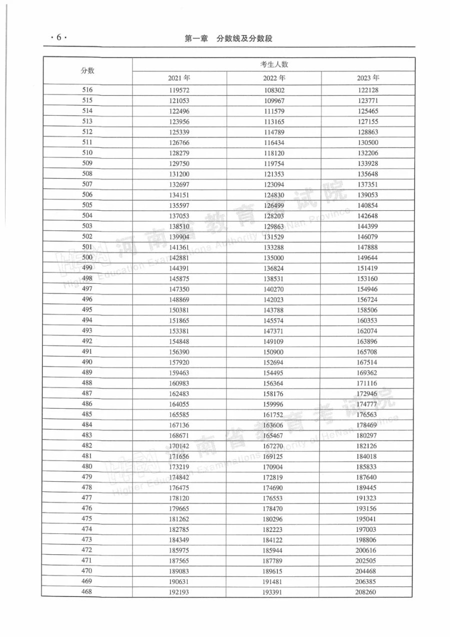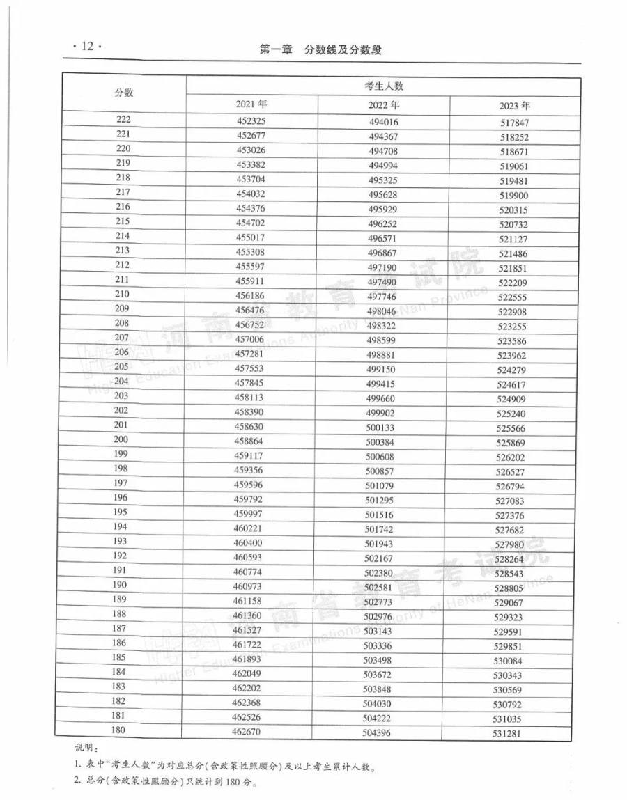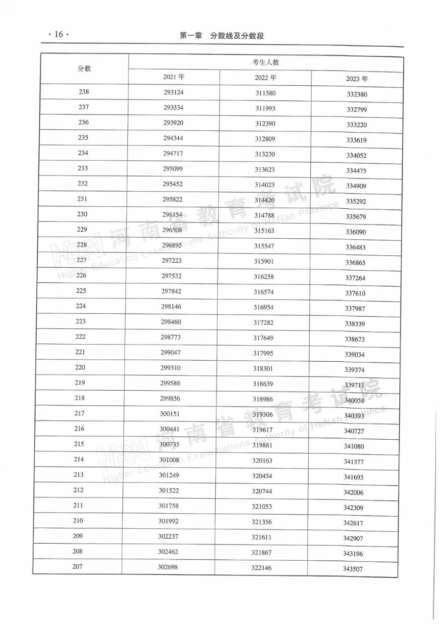 即该年所有参加高考的学生成绩分数段及排名位次的汇总,表中会列出该年高考每个分数同分段的人数。考生在查询自己高考成绩时,除了分数,也会查询到自己的成绩在全省考生中的排名情况,对于考生填报志愿有极大的参考价值。