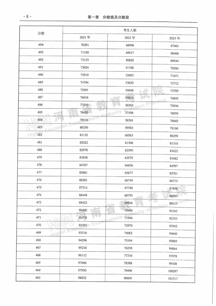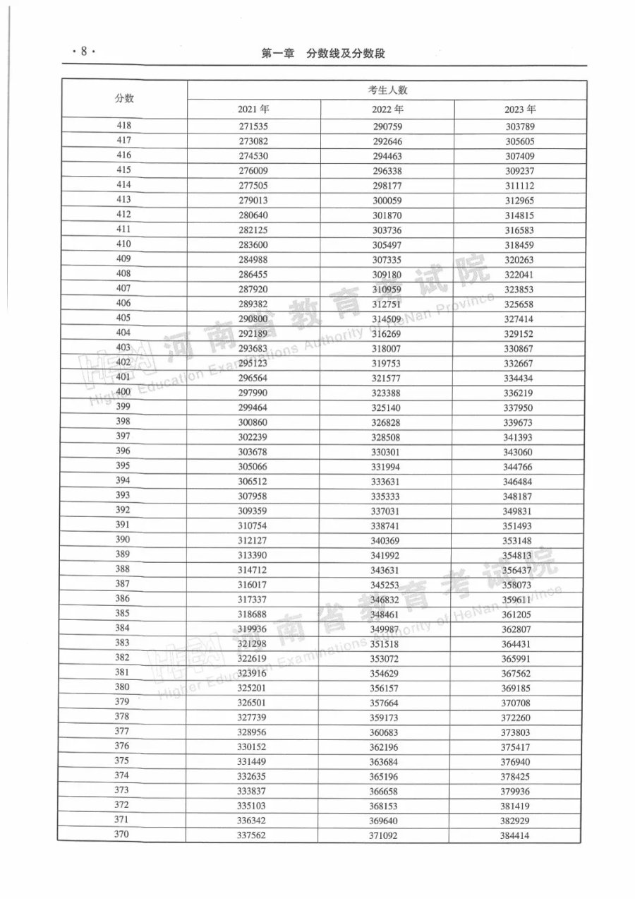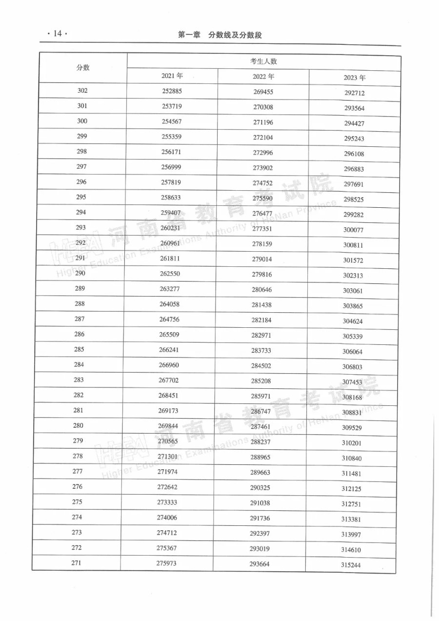 即该年所有参加高考的学生成绩分数段及排名位次的汇总,表中会列出该年高考每个分数同分段的人数。考生在查询自己高考成绩时,除了分数,也会查询到自己的成绩在全省考生中的排名情况,对于考生填报志愿有极大的参考价值。