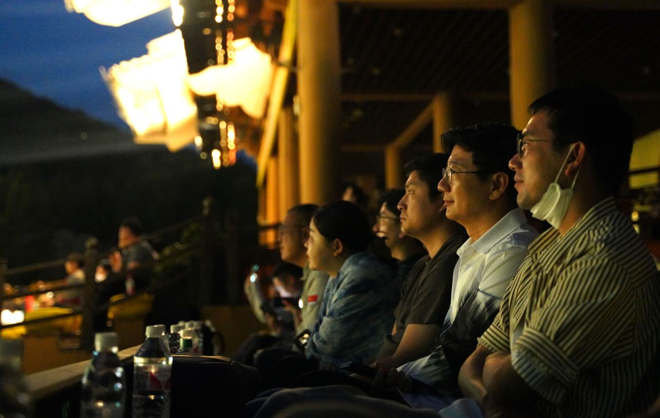 日暮西山,嘉宾一行适时来体验嵩山独有的特色节目——《禅宗少林•音乐大典》。