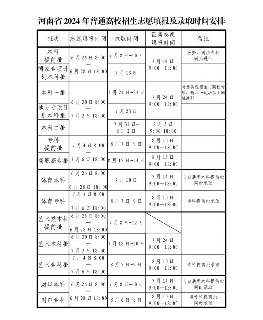 6月24日,河南省教育考试院发布2024年普通高等学校招生录取工作具体时间安排。