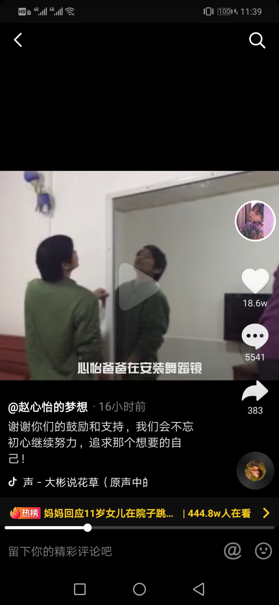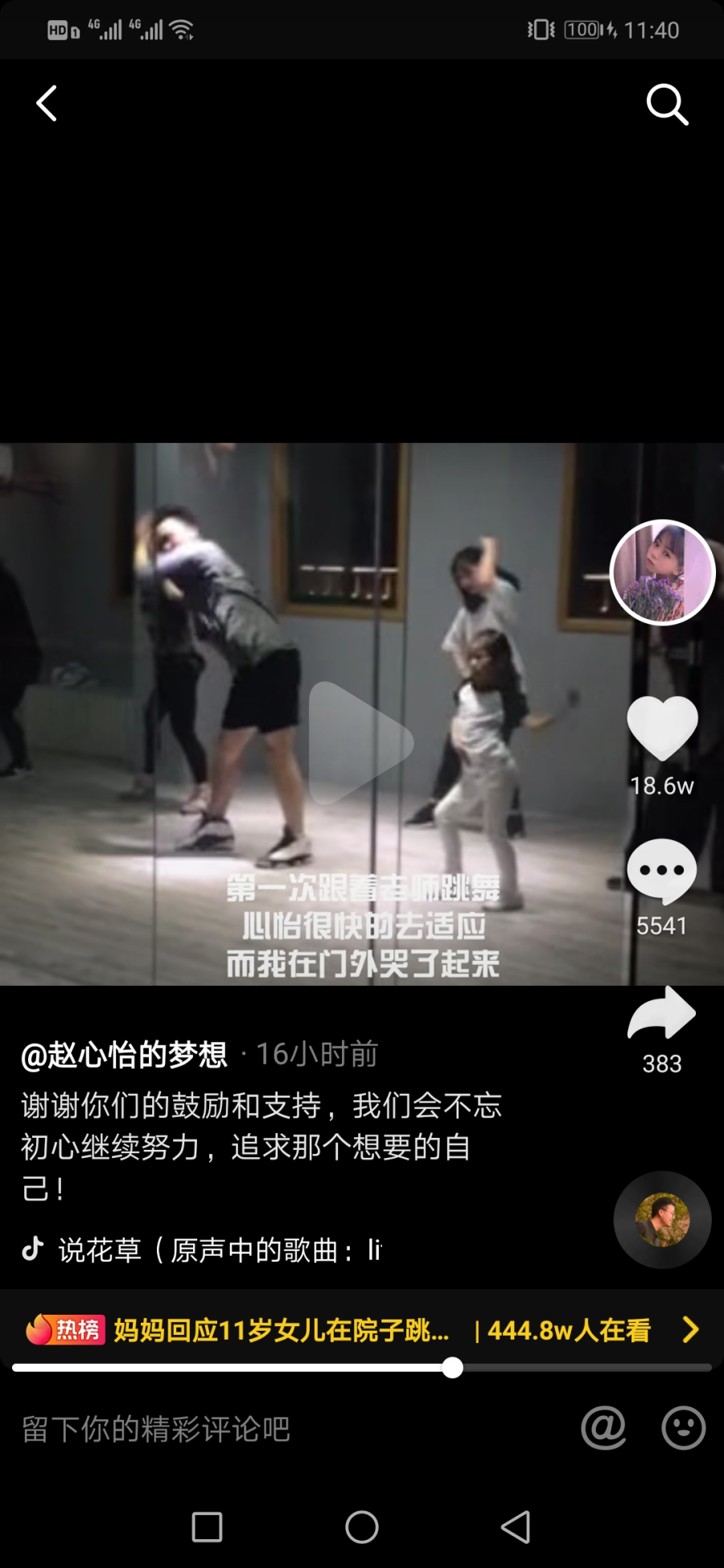 2月24日, #11岁农村女孩院子里跳舞获百万粉丝# 的话题登上了热门榜。对此,赵心怡妈妈李静回应称:“感谢你们让这个世界多了爱她的人。”