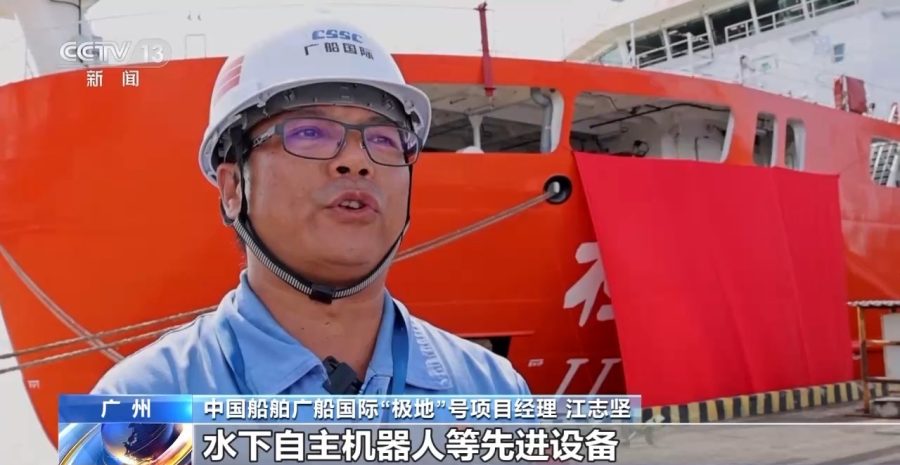 中国船舶广船国际“极地”号项目经理 江志坚:这艘船还将同时搭载无人机、无人船、水下自主机器人等先进设备。依托我国自主卫星网络系统,具备空、天、海、冰、潜综合一体化的科考能力,能够同步完成大气、海冰、水体、地球物理等多学科、交叉学科综合科学考察任务,计划将于2024年下半年开始承担科考任务。