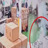 视频显示,事发时,位于厂房二楼堆放电池成品的区域突然冒出白烟,察觉到异常的现场工作人员随即开始寻找冒出白烟的电池组,在发现白烟并挪动电池组的过程中,电池堆放区域开始燃烧并发生爆炸,烟雾瞬间大量蔓延。现场工作人员试图用灭火器扑灭火情,但未能成功,大量烟尘伴随着爆炸和火光吞噬了整个车间,位于二层的工作人员最终未能及时逃出。