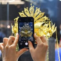 2022年7月29日,观众在消博会上拍摄老凤祥展出的“凤舞九天·金凤冠”。新华社记者 杨冠宇 摄