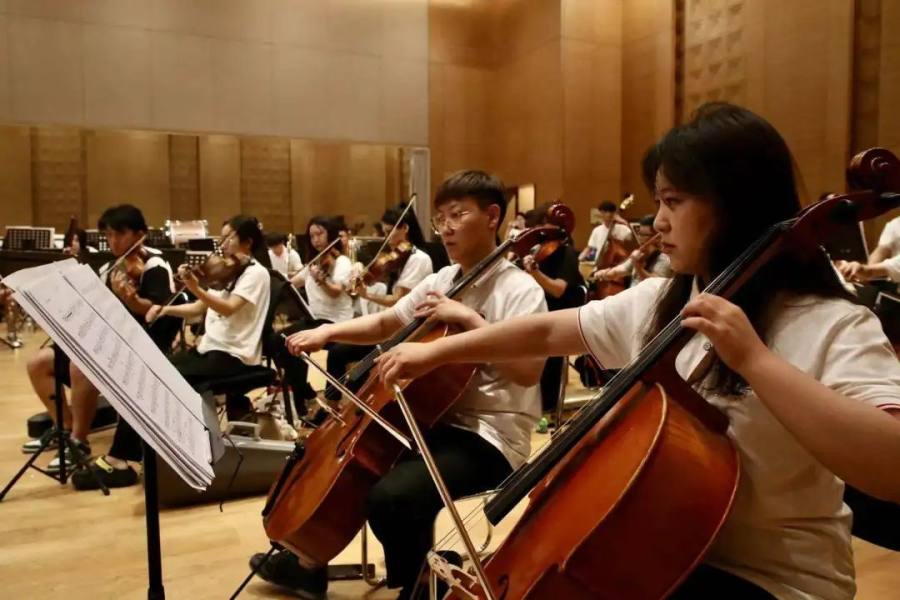这支85人的乐团,分为弦乐组、管乐组等不同小组,此次邻居节惠济站,派出了流行乐曲组,《大鱼海棠》《天空之城》《狮子王》《蝶恋》《青春舞曲》《克罗地亚狂想曲》《我的祖国》等耳熟能详的曲目满足各个年龄层观众的需求。