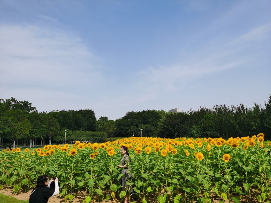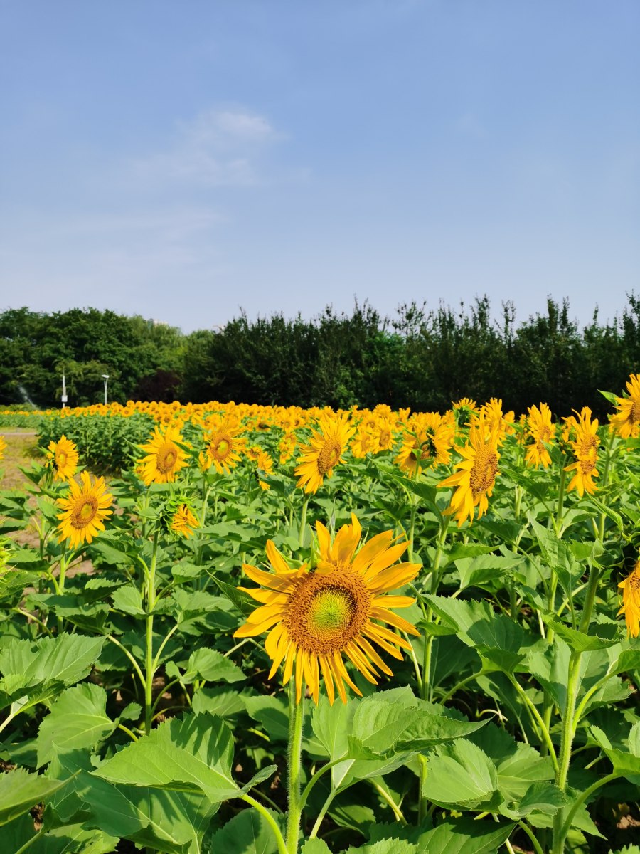 6月27日,郑州植物园内的朵朵葵花傲然挺立,为这个夏天增添了一抹亮丽的色彩。微风拂过,向日葵摇曳身姿,绿叶张开双臂追逐夏日阳光,迎接每一个走进花海的人。蓝天、白云、阳光、向日葵……像极了梵高笔下的油画。