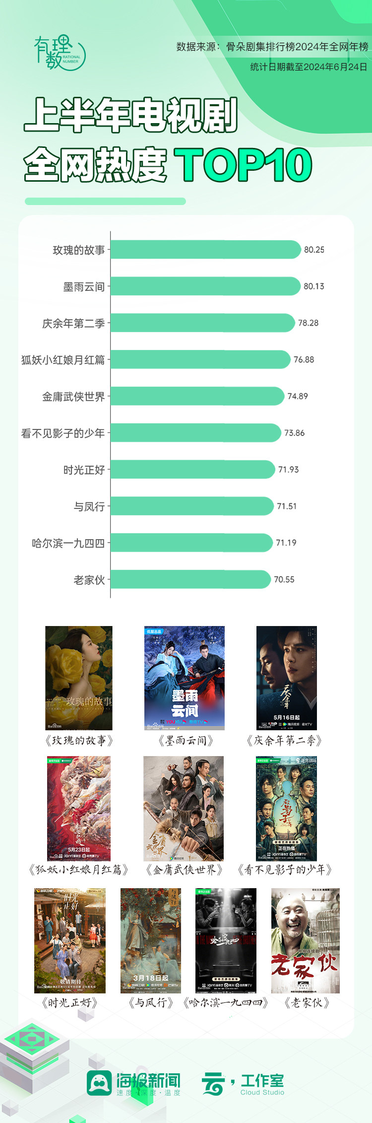 2024年上半年收官,国产剧表现不俗,从谍战、悬疑到古装、生活等各类题材都有出色的表现。