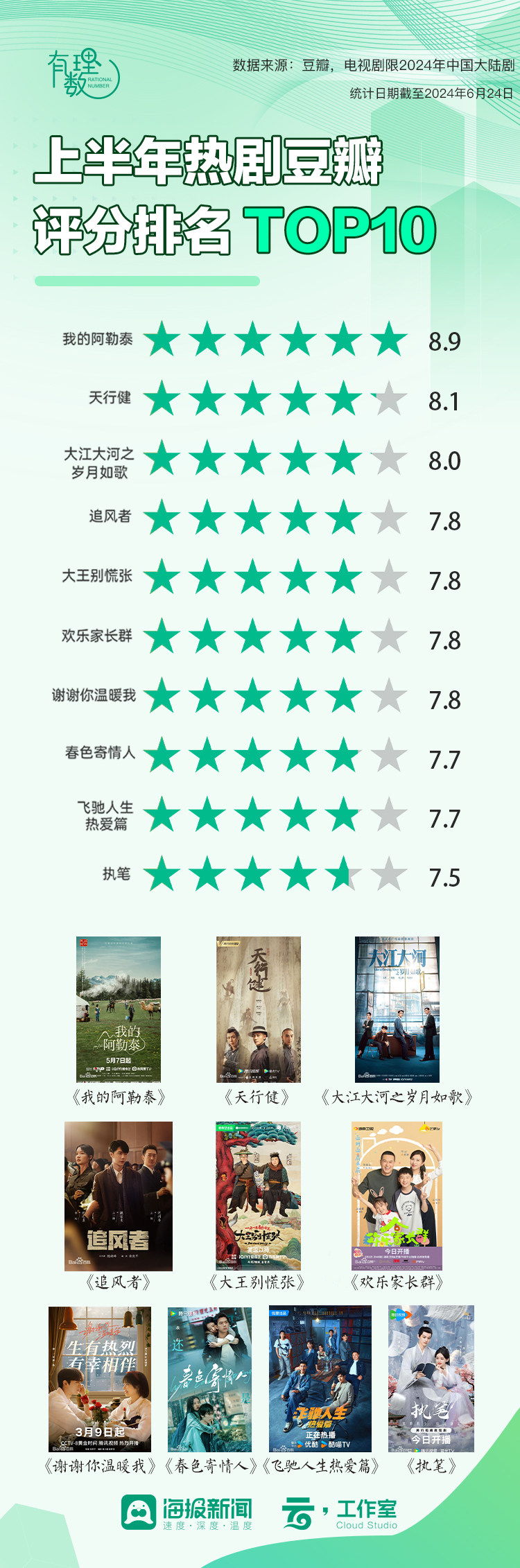 仔细观察可以发现,爆款总能在某一方面取得突出的成绩,收视率、播放量、评分想要三项全部获得好成绩并不容易,但若一项都没有高分,想成为爆款也很难。上半年,这些剧被网友给予较高评价。