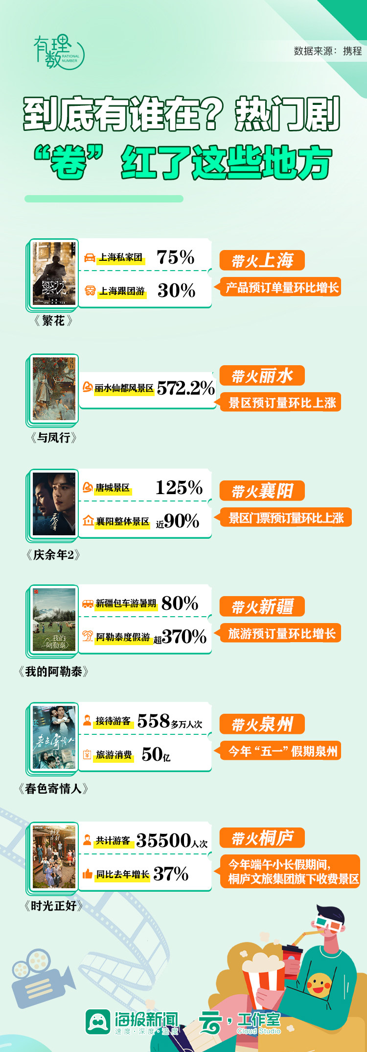 除此之外,热门剧还带火了这些地方,成为许多观众旅行清单中的下一个“诗与远方”。