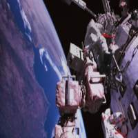 在空间站机械臂和地面科研人员的配合支持下,航天员乘组完成安装空间站舱外管路、电缆及关键设备的空间碎片防护装置后,李聪搭乘机械臂转移至巡检点,通过头盔摄像机对载荷适配器的表面状态进行巡检和拍照工作。