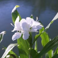 第一次认识野姜花的可爱,是许多年前的经验,我们在木栅醉梦溪散步,一位少女告诉我:“野姜花的花像极了停在绿树上的小白蝴蝶,而野姜花的叶则像船一样,随时准备出航向远方。”