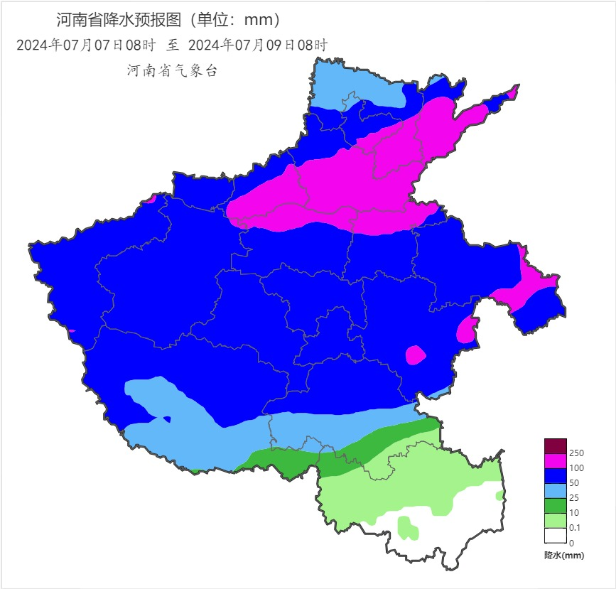 河南省气象台监测显示,6月28日以来,我省历经4次较明显降水过程,全省平均降水量99.4毫米,各地市平均降水量在51.7毫米到147.3毫米之间,平均降水量前三为信阳147.3毫米、驻马店141.7毫米、周口138.7毫米,单点最大降水量为信阳商城县黄柏山360.7毫米。根据最新预报资料分析,省气象台预计,7日到8日,我省淮河以北大部有大到暴雨,局部大暴雨,并伴有短时强降水、雷暴大风(东部、东北部8到10级,局地可达11级)等强对流天气。过程累计降水量:淮河以北大部50到80毫米,部分县市100到150毫米,个别站点200毫米以上;最大小时降水量50到80毫米。9日至11日,我省黄河以南仍有明显降水过程。6月底以来我省强降水过程频繁,累计雨量大,7日至8日强降水仍将持续,暴雨落区重叠度高,淮河以北暴雨致灾风险加大,发生中小河流洪水、山洪、地质灾害和城乡积涝等的气象风险高;当前正值暑期出游旺季,需关注雷电、短时强降水、雷暴大风等强对流天气对道路交通、旅游出行等的不利影响。各地需密切关注天气变化趋势及属地气象台站发布的最新天气预报、气象灾害预警信号和气象风险提示,做好防范应对。7月6日,中央气象台发布重要天气提示。预计7日至8日,四川东部至黄淮等地降雨将再度加强,四川盆地、陕西中南部、山西南部、山东、河南、苏皖北部等地部分地区有大到暴雨,四川盆地北部、河南中北部、山东中南部等地部分地区大暴雨,局地特大暴雨;过程累计雨量40~100毫米,部分地区120~200毫米,局地250~350毫米,最大小时雨量30~50毫米,局地80毫米以上。7日至8日,四川东部、陕西至黄淮将有一次强对流过程,部分地区伴有8~10级雷暴大风或冰雹,河南中东部、山东中南部、苏皖北部局地可达11级,有龙卷发生的可能性。主要影响时段在7日白天。更新: 2024年7月6日17时