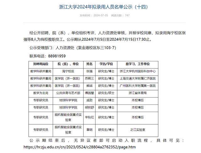 浙江大学7月5日对2024年拟录用人员名单进行公示,公示内容里面显示,原学习、工作单位为浙江省体育局的傅园慧,将入职浙大公共体育与艺术部,拟聘用岗位为教学为主岗。