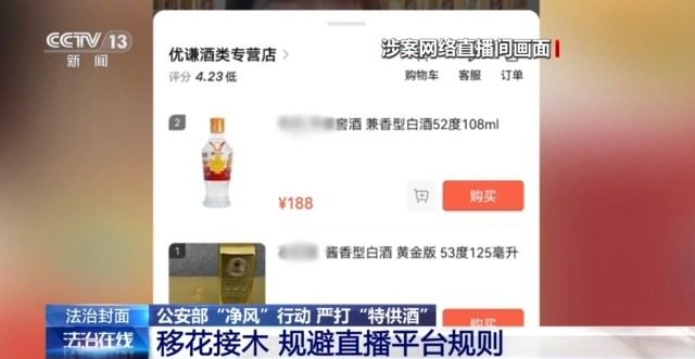 原来这些主播虽然在直播间里大肆销售各种所谓的“特供酒”,但当消费者点开直播间提供的购买链接时,关联的商品却是直播间代理的其他品牌生产的酒水,消费者下单后,商家再将主播推销的“特供酒”发给买家,民警推测,这些售卖特供酒的直播间正是利用这种移花接木的方式来规避直播平台的监管规则。
