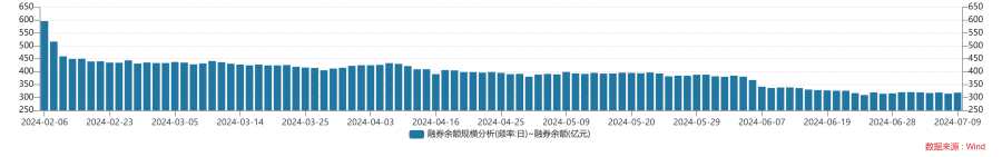 与此同时,随着转融券存量逐步了结,A股近期融券余额同样下降明显。Wind数据显示,截至最新的7月9日,A股融券余额已缩水至318.38亿元,同样较2月初水平几近腰斩。