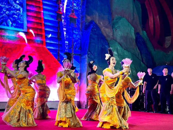 在当天的活动中,舞剧《水月洛神》经典片段《芙蓉池》、男子群舞《上春山》、歌曲《牧羊曲》等一批精品节目让前来逛街消费的市民和游客叹为观止。
