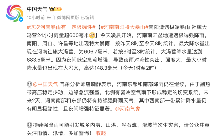 (正观新闻综合@中国天气、河南气象、央视新闻、@应急管理部等)