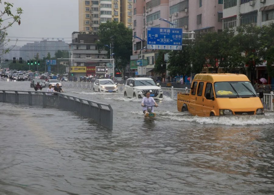 △16日,河南省漯河市发生持续强降水,市区部分道路出现积水,影响市民通行。
