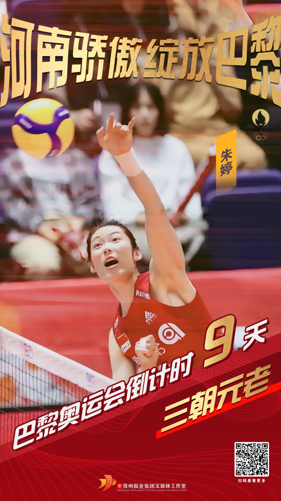 河南运动员朱婷,将参加巴黎奥运会女子排球项目的比赛。