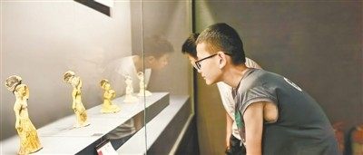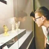孩子们在郑州大象陶瓷博物馆欣赏唐代乐舞俑 本报记者 左丽慧 摄