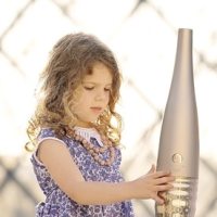 在巴黎卢浮宫,一个小朋友在传递前触摸火炬