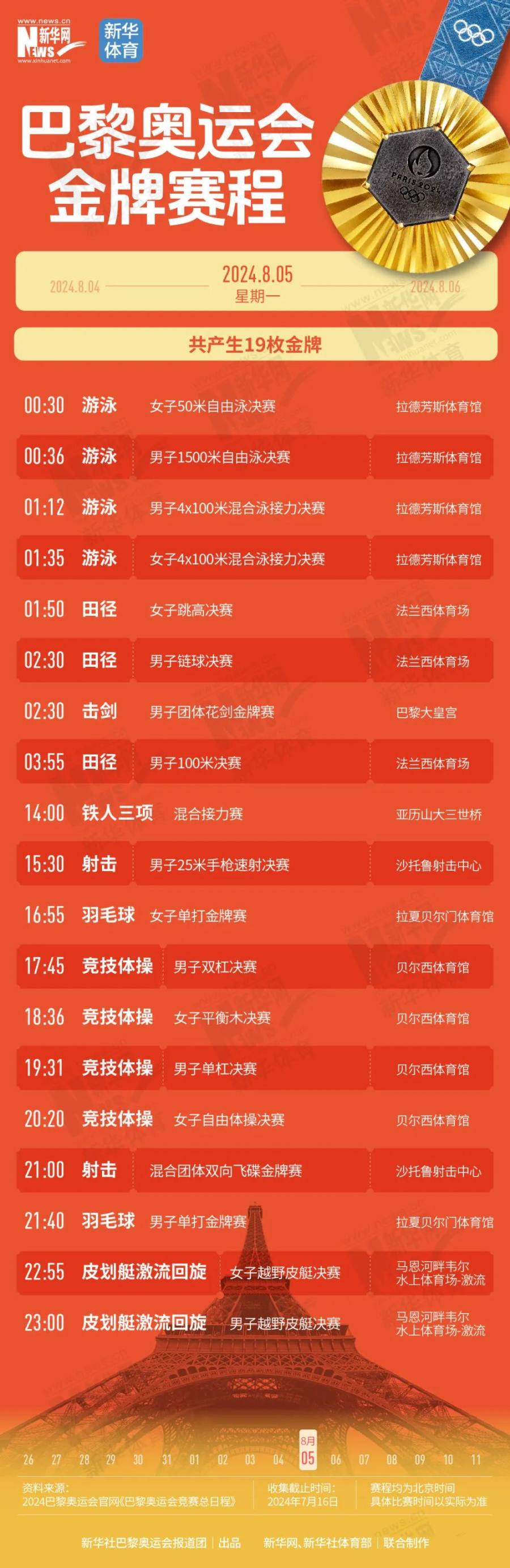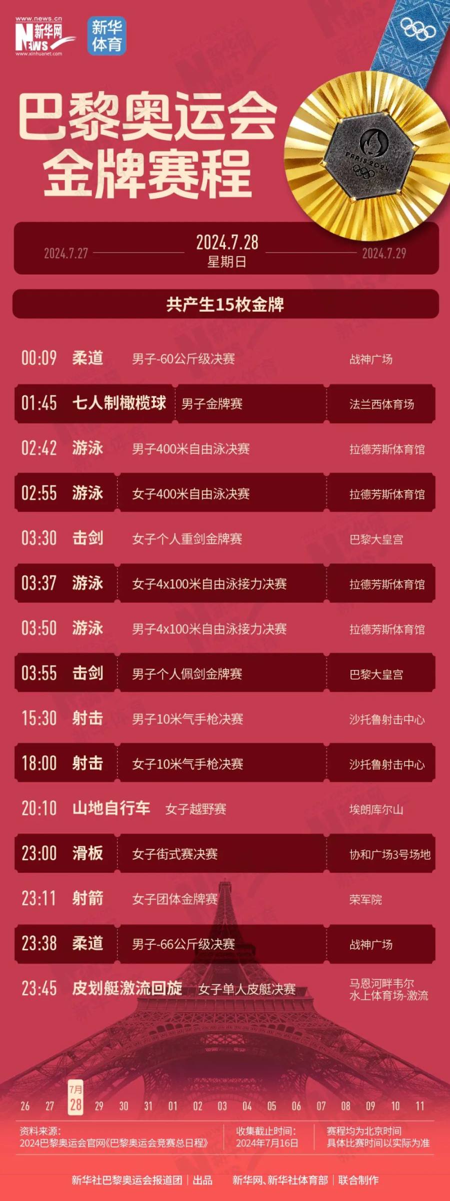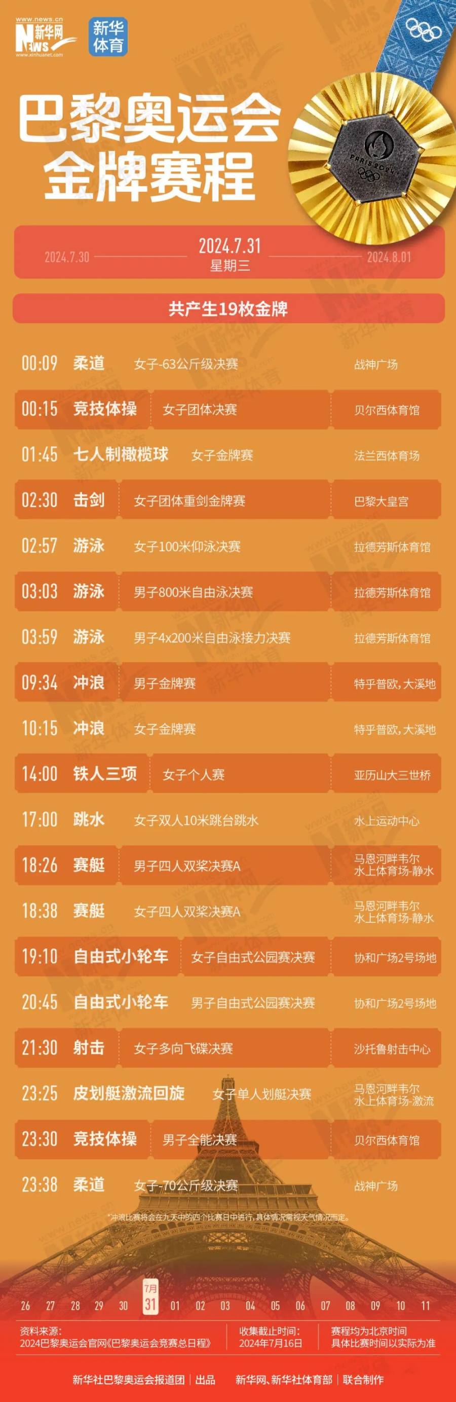 含“金”量超高!巴黎奥运会金牌赛程来了