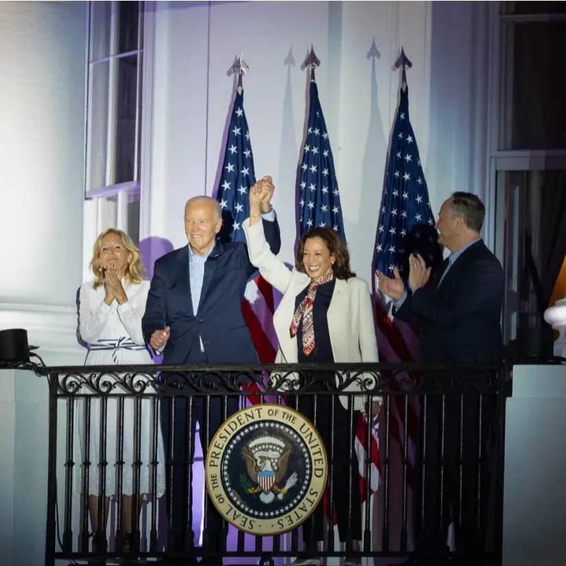 吕祥:这不意外,之前像美国有线电视新闻网(CNN)这种与民主党关系密切的媒体已经报道过,民主党将在上个周末决定拜登是否退选。对于民主党来说,晚一天决定就增加一分沉没成本。之前拜登及其团队之所以有不退选的打算,是因为民主党在拜登身上已经投入了太多成本,转投他人会不合算。但现在形势所迫,因为拜登的身体状况和认知能力已经让党内最支持他的人也感到难以为继,所以出现了这个看似突然的决定。我同意“及时止损”的判断。一开始大家可能认为这只是一个总统选举的问题,但拜登在辩论中的失败就像“皇帝的新衣”被揭穿,让人看清了他的不足。所以《纽约时报》立即发表社论,劝他退选。这种社论形式劝退是少见的,之后像《华盛顿邮报》这样的亲民主党媒体也用委婉的方式让他尽快做决定。关注美国总统选举民调数据的人都知道,从去年底到现在,拜登的支持率在摇摆州和关键州全面下滑。现在民主党人更关心参众两院的选举,每个议员都在谋求连任,他们担心被拜登的表现拖累。在这种情况下,民主党考虑的不仅是拜登个人的选举问题。虽然换一个人也很难扭转颓势,但在议会选举中要尽可能地争取席位,这是多数民主党人的看法。如果让拜登继续参选,未来不确定性太大,可能会带来更大损失。所以民主党的核心人士已经不敢再继续支持他。最终,众议院前议长佩洛西和参议院多数党领袖舒默等民主党高层发挥了关键的说服作用。这是7月4日在美国华盛顿白宫拍摄的美国总统拜登(左二)和副总统哈里斯(右二)。新华社发