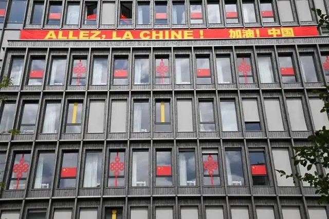 这是7月23日拍摄的巴黎奥运村内中国体育代表团成员居住的公寓。新华社记者 胡虎虎 摄