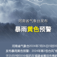 河南省气象台2024年7月26日15时00分发布暴雨黄色预警: