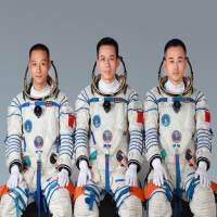 △神舟十七号航天员乘组合影,从左至右依次为:江新林、汤洪波、唐胜杰。
