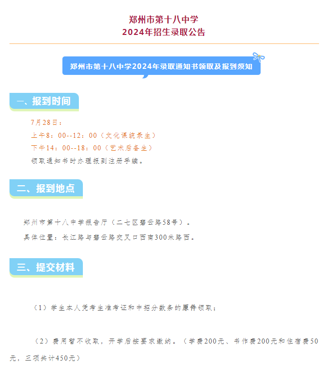 按照郑州市中招办2024年市区普通高中招生工作日程安排,普通高中招生录取工作将于7月26日—8月11日进行。7月27日、28日为公办普通高中的录取审批时间。7月26日,郑州外国语学校、郑州一中等陆续发布录取公告。