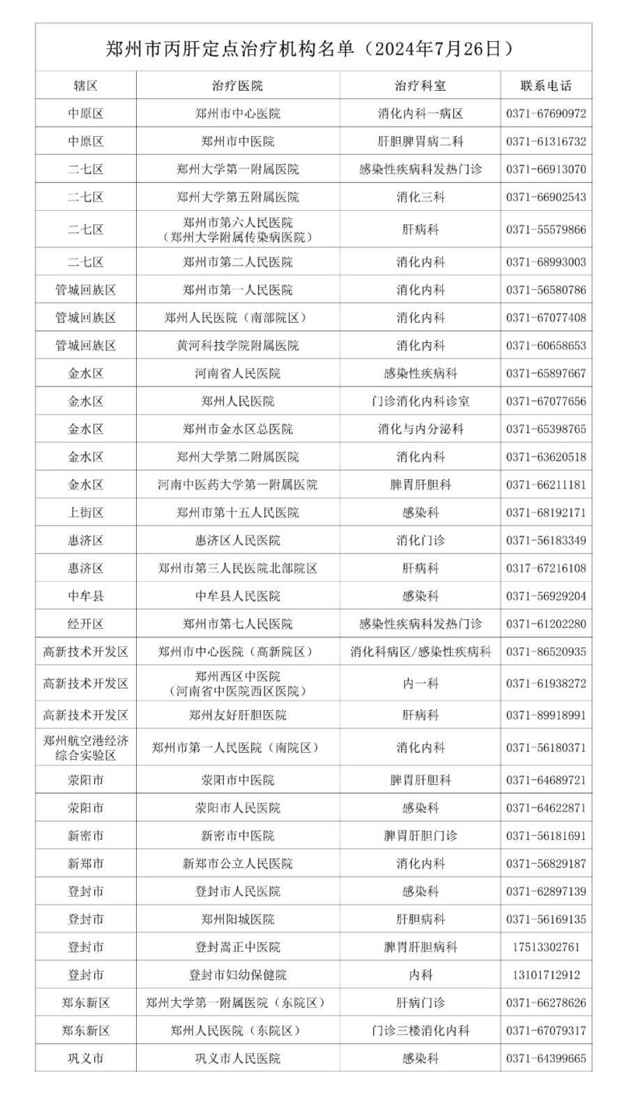 郑州市开展丙肝调查随访工作(附34家定点治疗机构)