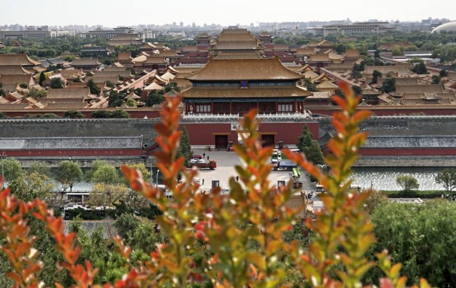 图为2023年11月6日从景山上拍摄的故宫。