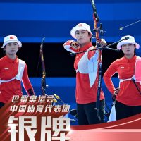7月28日,在巴黎奥运会射箭女子团体金牌赛中,由李佳蔓、杨晓蕾、安琦轩组成的中国队获得银牌。