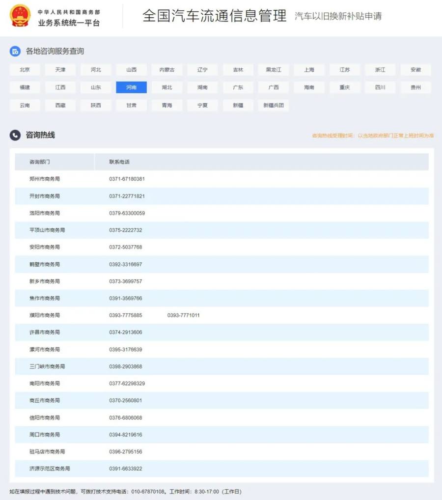 河南各地咨询热线