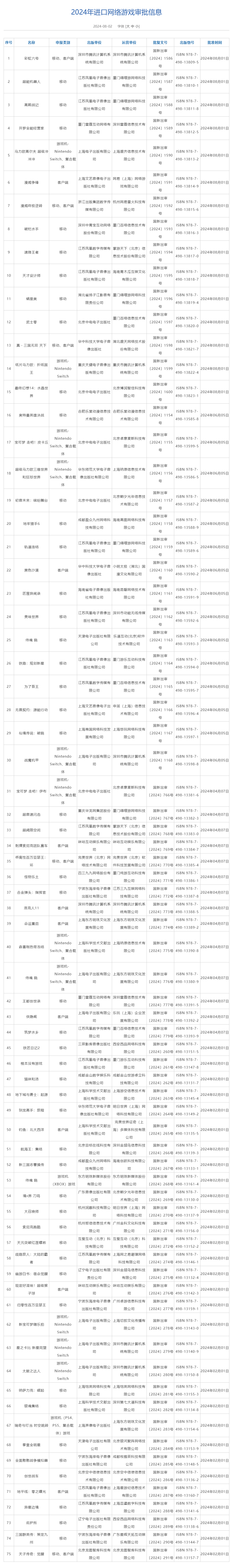 国家新闻出版署更新2024年进口网游审批信息,新增15款游戏