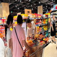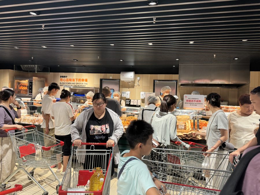 “刚刚买了两盒胖东来网红大月饼、两盒炸鸡,还有两盒绿豆糕。”市民王女士推着购物车在郑州永辉超市瀚海海尚店继续购物。8月7日,被胖东来调改后的第二家郑州永辉超市——永辉超市瀚海海尚店恢复营业。