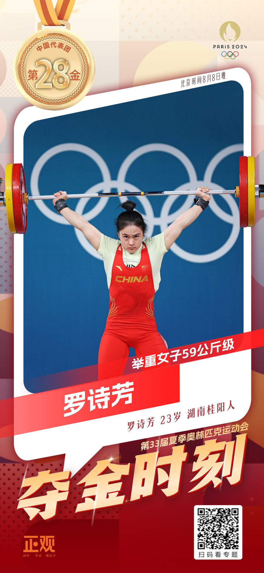 第28金!罗诗芳夺得举重女子59公斤级金牌
