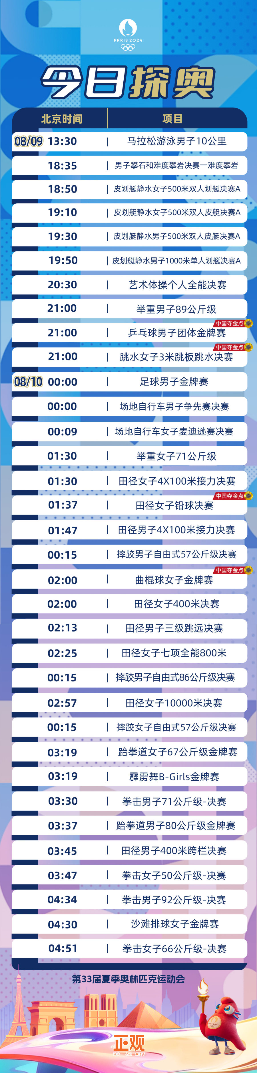奥运8月9日看点:国乒男团冲击五连冠,女曲时隔16年再进奥运决赛