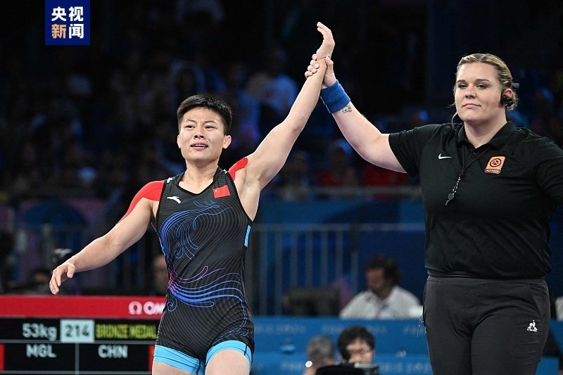 北京时间8月9日,在巴黎奥运会摔跤女子自由式53公斤级铜牌赛中,中国选手庞倩玉夺得铜牌。