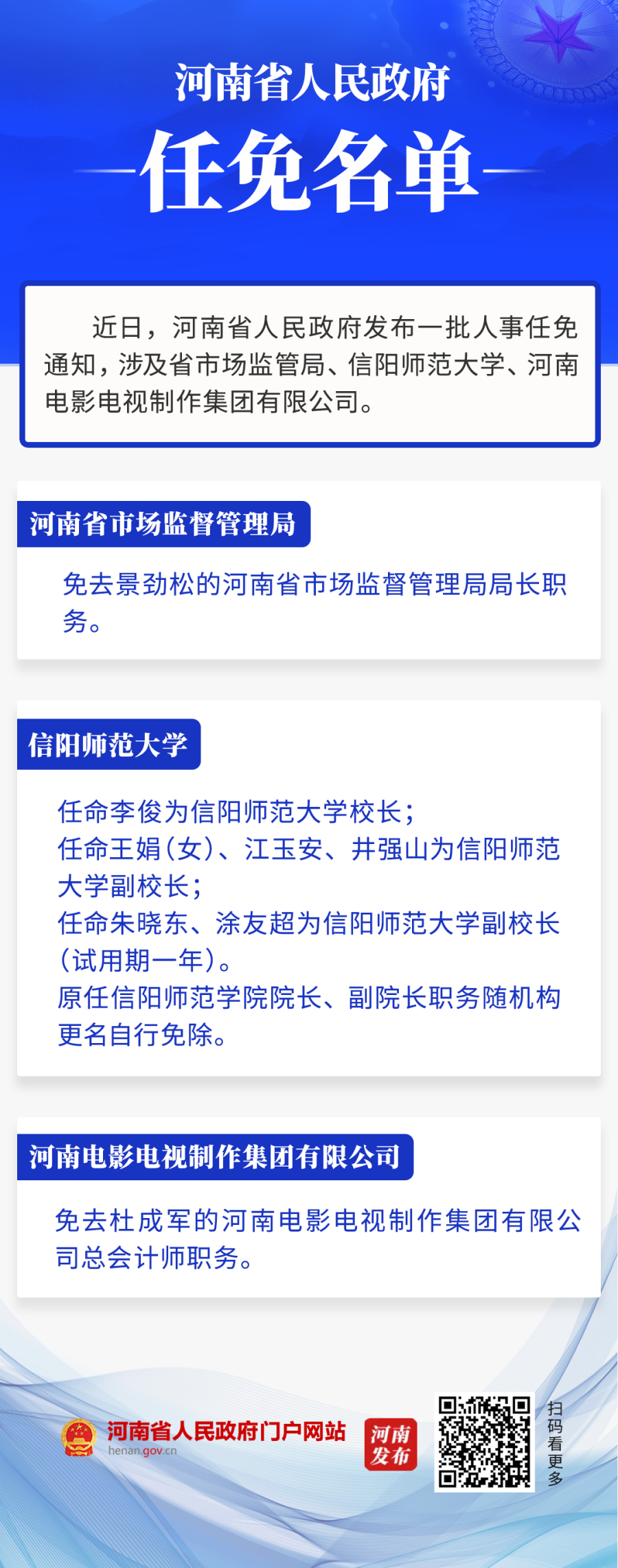 河南省政府新任免一批干部