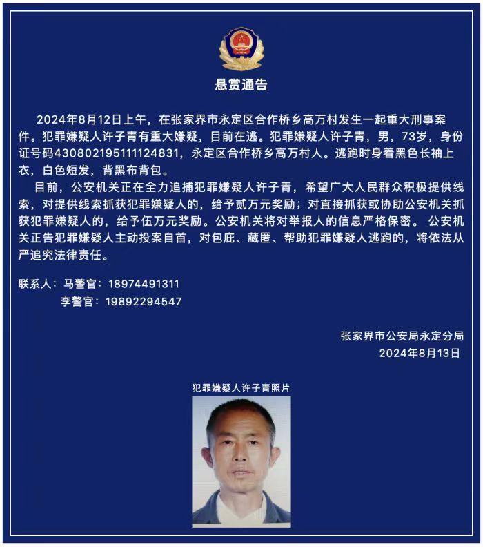 湖南张家界发生一起刑案致1人死亡,73岁嫌疑人已落网