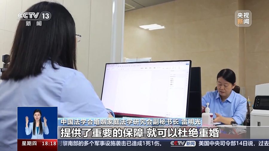 中国法学会婚姻家庭法学研究会副秘书长 雷明光:这次草案取消了婚姻登记的地域的限制,不管是结婚登记还是离婚登记都不再需要户口本,不仅实现了我们国家内地居民婚姻登记的跨省通办,在任何一个地方都可以办理结婚登记和离婚登记,同时为实现婚姻登记的全国的信息统计提供了重要的保障,就可以杜绝重婚。
