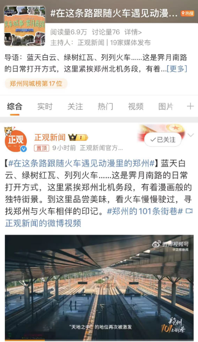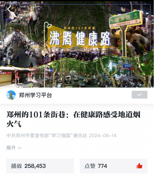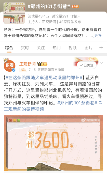 《郑州的101条街巷》部分传播效果截图