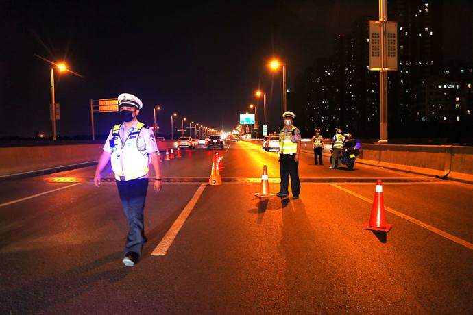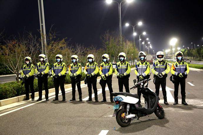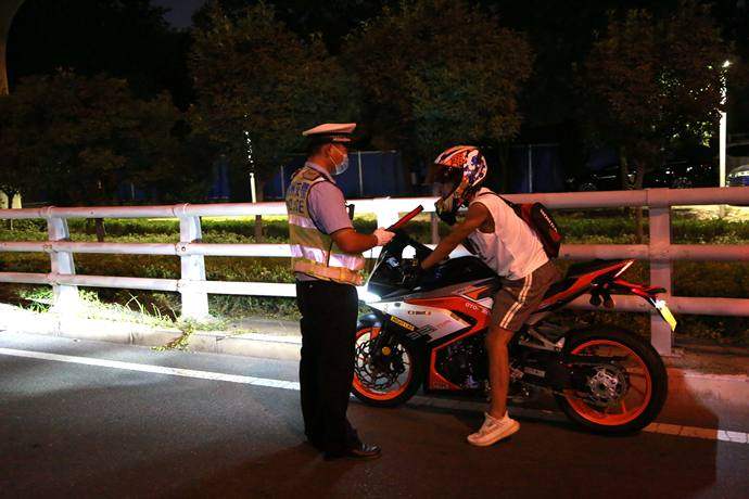 8月15日当晚,郑州交警二支队集中警力在奥体中心博体路开展“飙车炫技”违法整治。