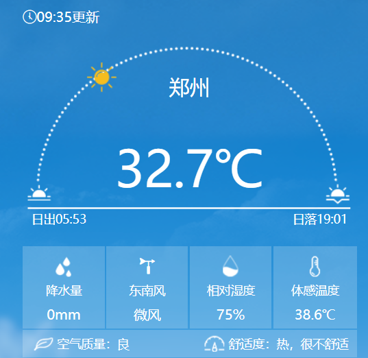 郑州的体感温度便早早达到38.6℃