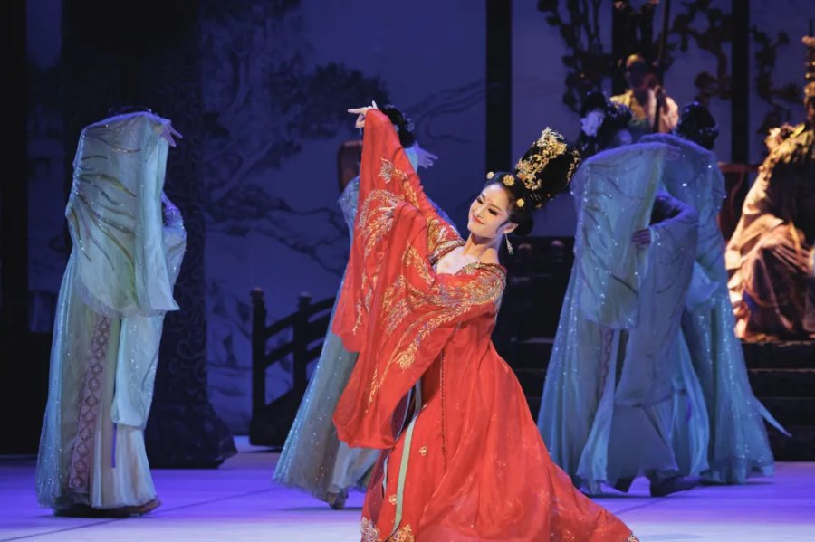 王萱(饰贵妃),中国歌剧舞剧院舞剧团主要演员。代表作:《醉春风》《奈何虞兮》《燕山月影》《化蝶》;参演舞剧《李白》饰演妃、《孔子》饰演妃、《梁祝》饰演化蝶、《舞上春》《昭君出塞》《赵氏孤儿》《英雄儿女》《秀水泱泱》《到那时》;曾参加中国共产党成立100周年大型情景史诗《伟大征程》等国家级大型重要活动。