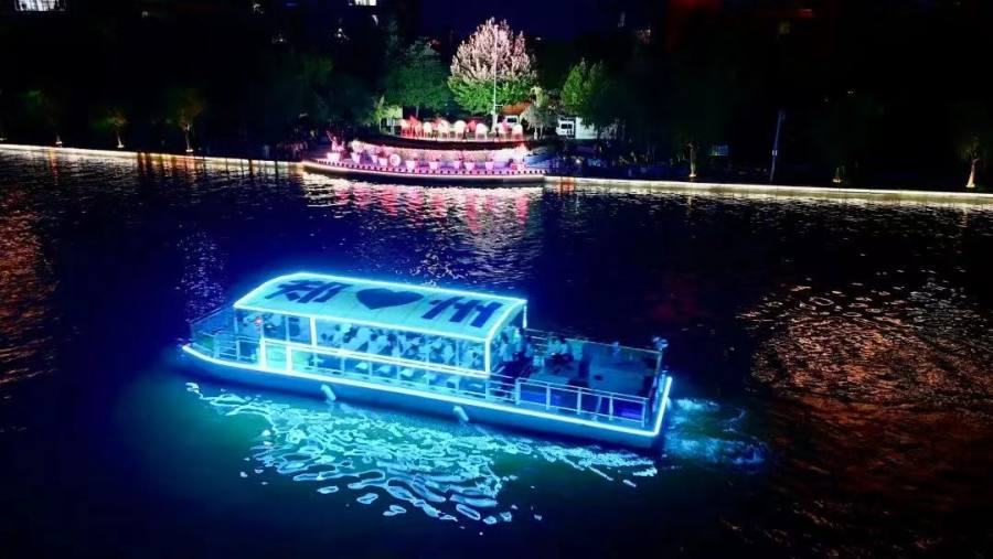 游览路线别具特色,乘船自如意湖起,沿如意运河至北龙湖,途中将欣赏到八幕光影水秀表演,共同感受郑州5.2公里的水上航程,领略这座城市的独特魅力。