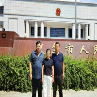 周兆成与王某阳父母在法院门口的合影 受访者供图